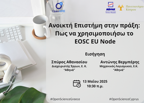 Οι εκπρόσωποι του OpenAIRE σε Ελλάδα και Κύπρο σας καλούν στο διαδικτυακό σεμινάριο που θα διεξαχθεί την Τρίτη 13 Μαΐου, στις 10.30 π.μ.-12.00 μ.μ., με θέμα το EOSC EU Node, την πρώτη υλοποίηση του Ευρωπαϊκού Νέφους για την Ανοικτή Επιστήμη (EOSC) της Ευρωπαϊκής Επιτροπής.